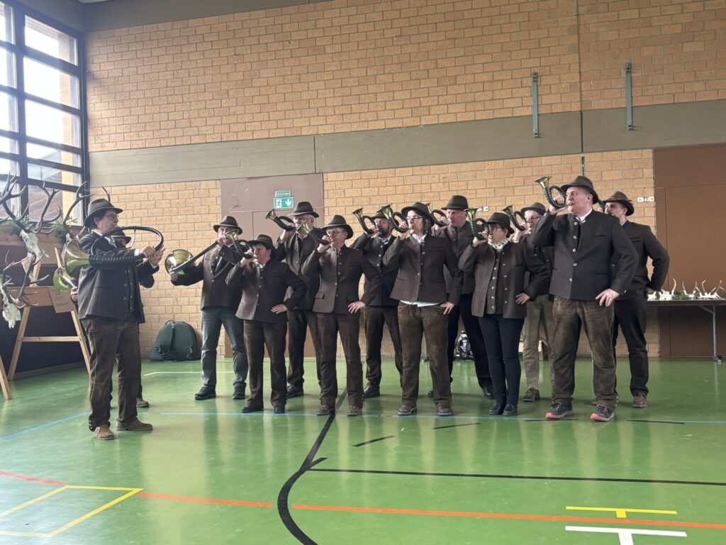 Zwischenzeitlich wurde die Versammlung von den Jagdhornbläsern der Kreisgruppe Bad Brückenau e. V. musikalisch untermalt.